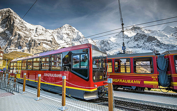 巍峨聳立於伯恩高原的少女峰,以海拔4,158公尺的高度成為阿爾卑斯最著名的雪峰之一。其純白的冰川、壯麗的雪山景致與悠久的登山歷史,使它成為瑞士旅人心中必訪的冰雪聖地。我們將搭乘少女峰登山齒軌列車,穿越峽谷與雪原,直達海拔3,454公尺的少女峰觀景台,其中又以海拔3,571公尺的斯芬克斯高台最受青睞。當我們站在高台上,阿萊奇冰川、雪峰與壯麗山谷盡收眼底,彷彿置身雲端。