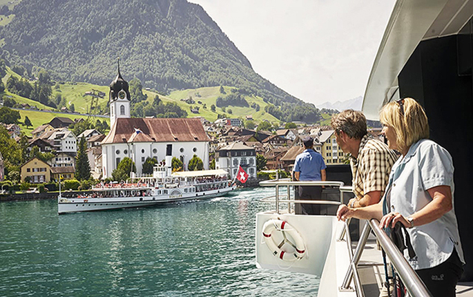 今天的盧森環遊是乘坐盧森湖遊船前往瑞吉山,您將展開一段穿梭於瑞士阿爾卑斯群峰與湖畔小鎮的悠閒旅程。盧森湖的湖面如鏡,倒映著雪峰、翠綠山谷與湖岸古城,彷彿置身於一幅靜謐的畫卷。遊船抵達小鎮後將轉乘瑞吉山登山齒輪列車登上被譽為「阿爾卑斯的陽光女王」的瑞吉山,海拔 1,798公尺,是瑞士中部最受歡迎的高山觀景勝地。登上瑞吉山,可以俯瞰湖光山色、翠綠山谷與遠方雪峰,春夏的花海與湖光倒影、秋天的金黃山谷、冬季的雪峰與滑雪勝地,每一刻都令人屏息。