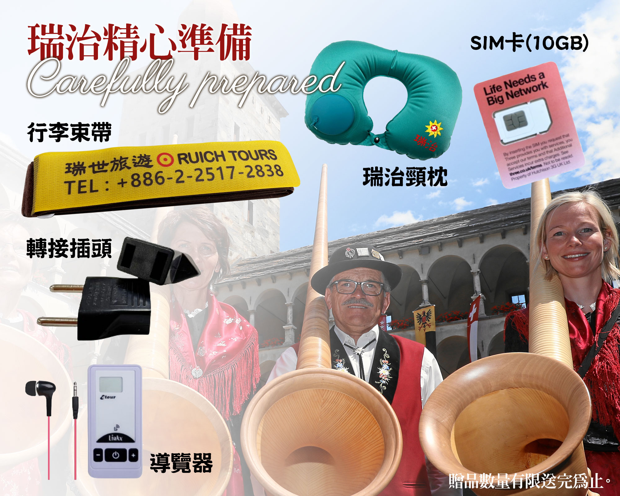 ※ 如遇冰河列車客滿或停駛,則改搭瑞士國鐵(中途需轉車),並且退費每人NTD 2,000,敬請知悉
